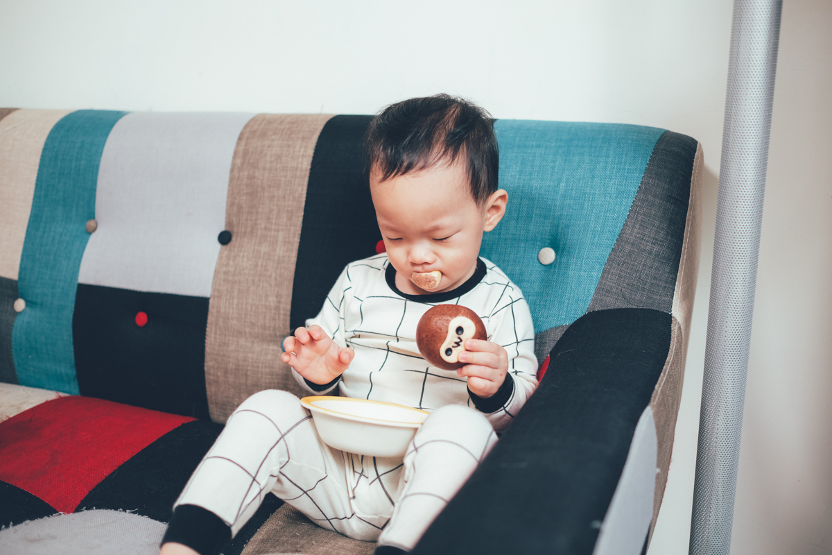 有時候假日出門前我們也會小小的享受一下一家人短暫的早餐時光(因為湯包真的是速度型吃貨),湯包現在大概是在說:不就是吃個包子為什麼要拍我~~