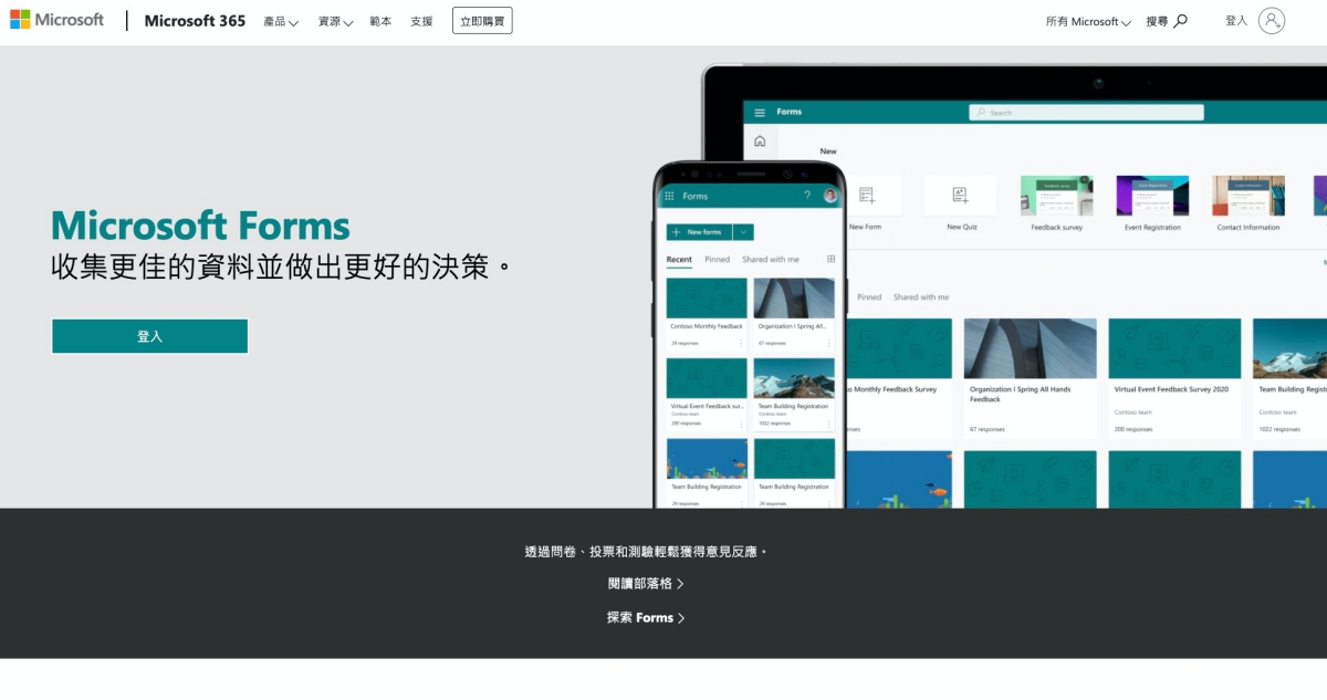 網站:https://www.microsoft.com/zh-tw/microsoft-365/online-surveys-polls-quizzes