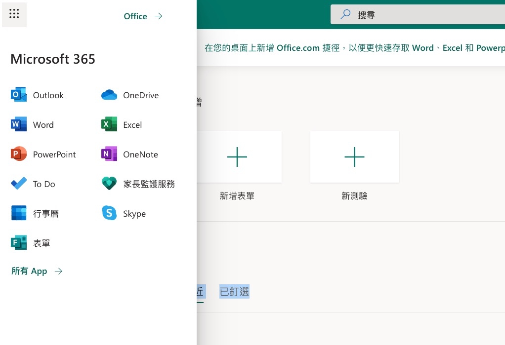 在 Microsoft 365 的選單裡,就可以看到表單的存在,之前是沒有的,要企業版用戶才有。