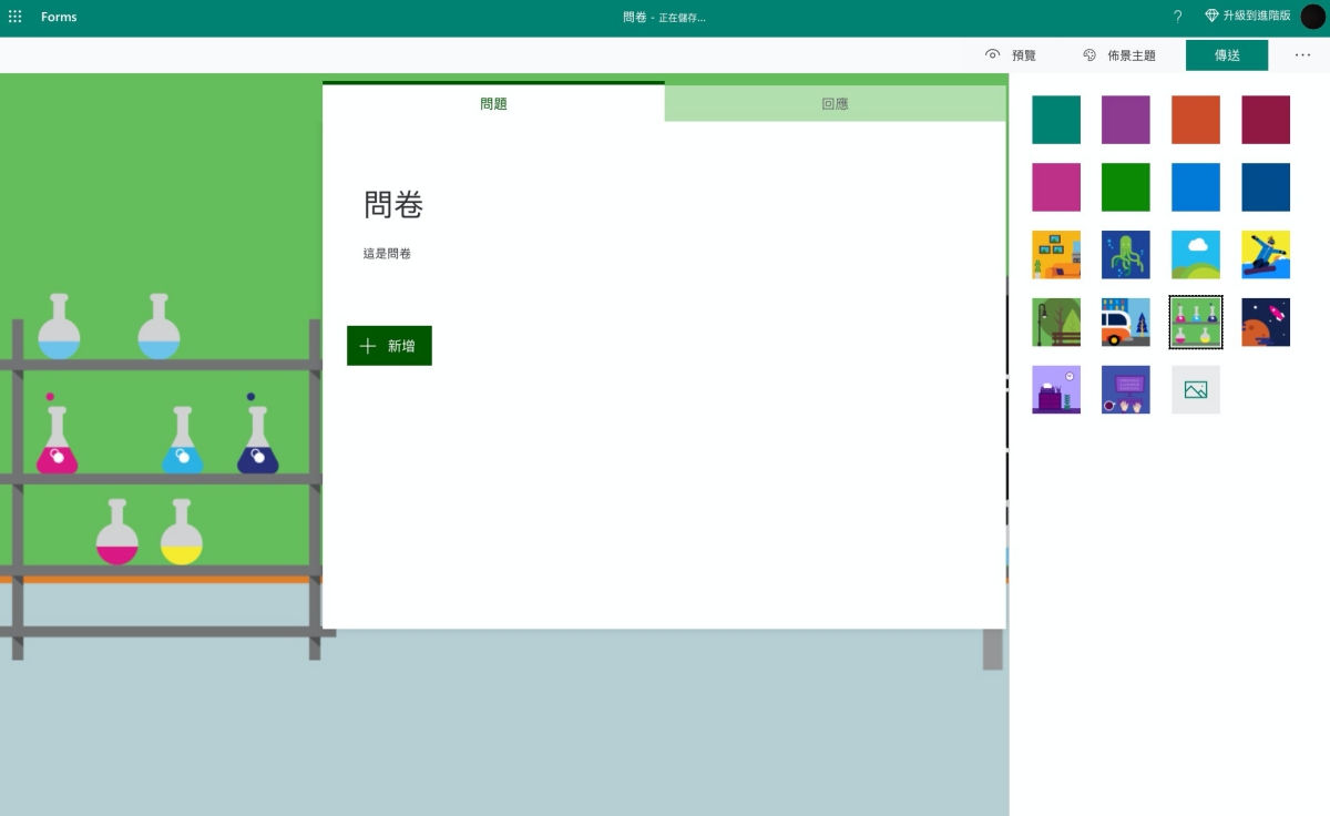 右上角有一些佈景主題可以選擇,也可以自行上傳照片做為背景使用。