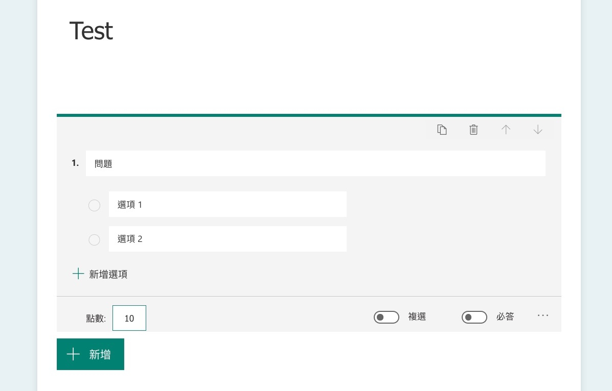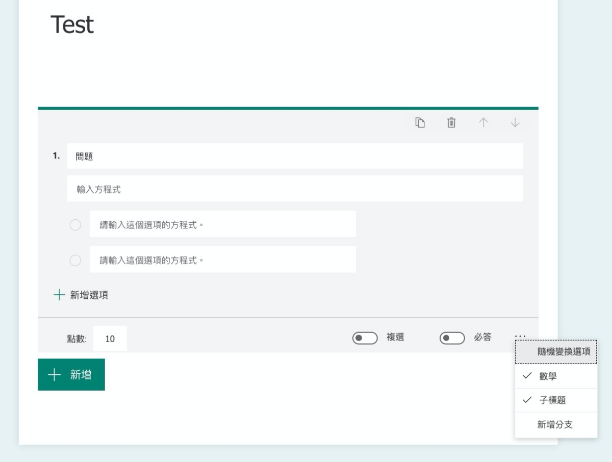 但是像測驗下,會多一個「點數」可以填寫,這就像是分數一樣,答對這一題可以獲得多少分數這樣。