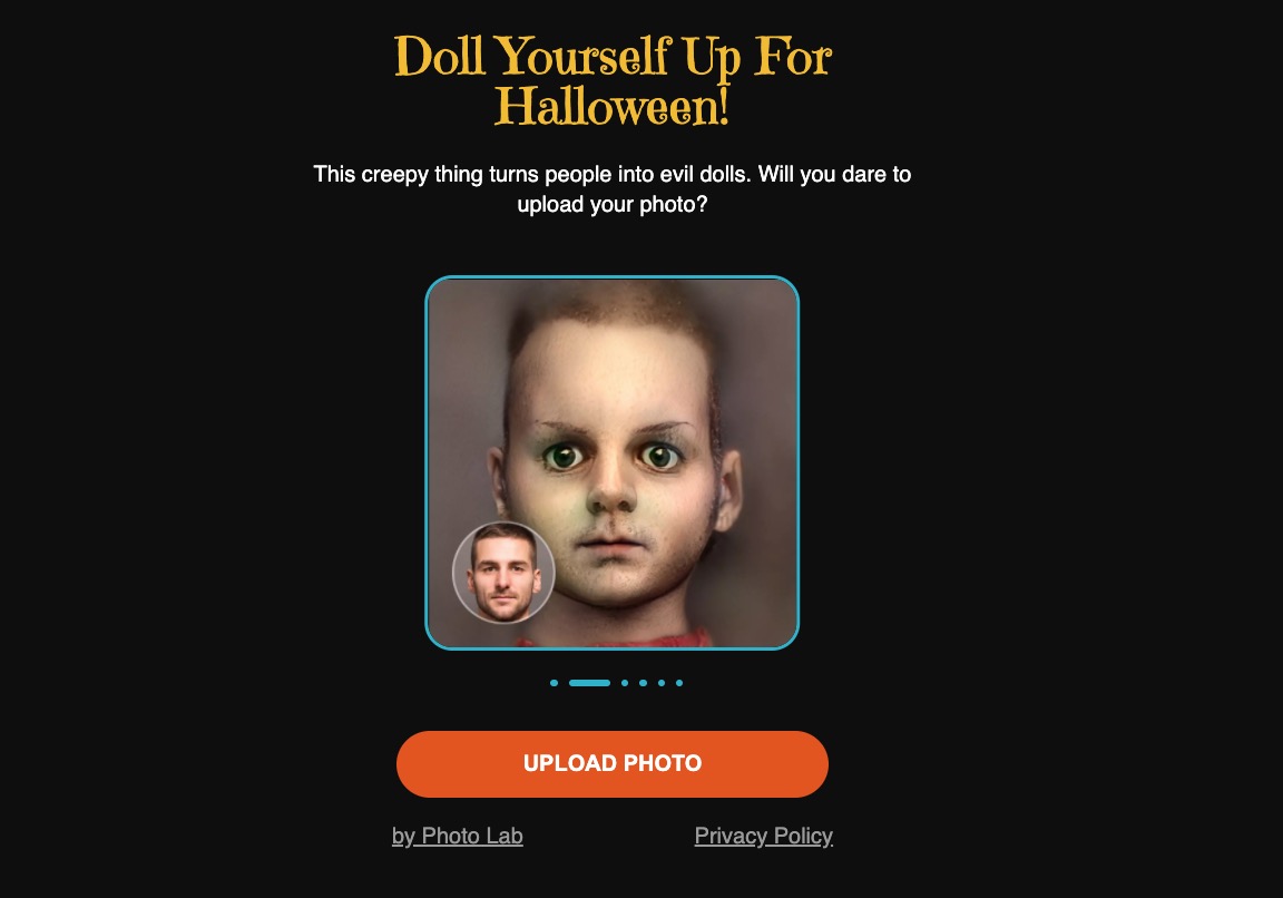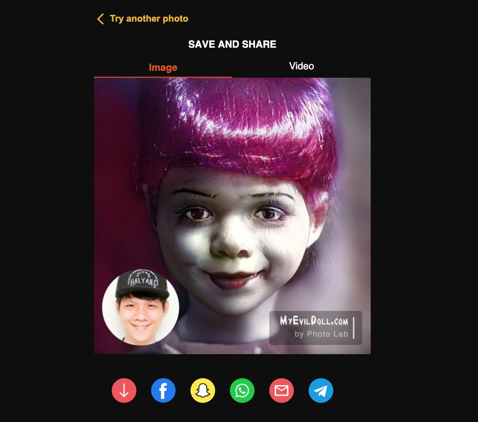 網站:https://myevildoll.com/按下 Upload Photo 後選張頭像上傳,儘量選背景比較乾淨的,或自己乾脆在白牆自拍一張就可以。