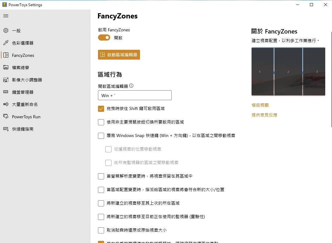 其它還有比較進階的 PowerToys Run,用的到的再去試看看,一般人應該以上這些功能就差不多了,都非常的好用,其實我比較期待這些功能都直接內建在 Windows 10 裡就好了,幹嘛還要另外裝呢...