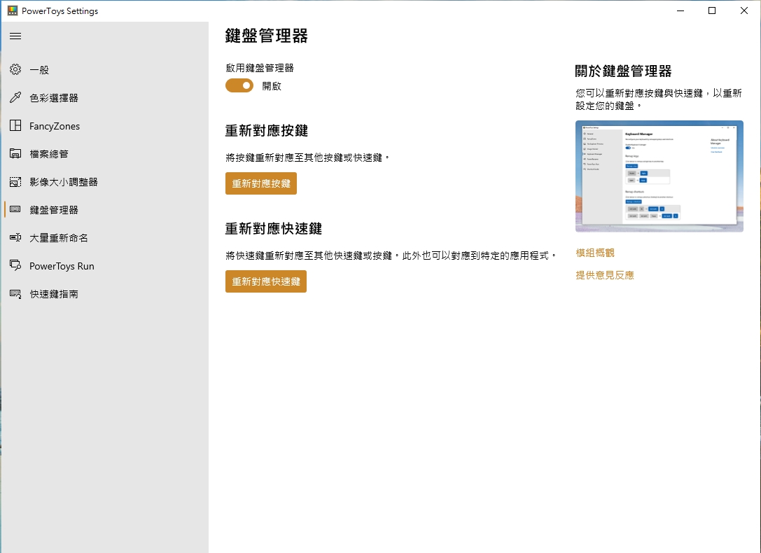 鍵盤管理器主要是調整快速鍵,但我不太建議動這個。