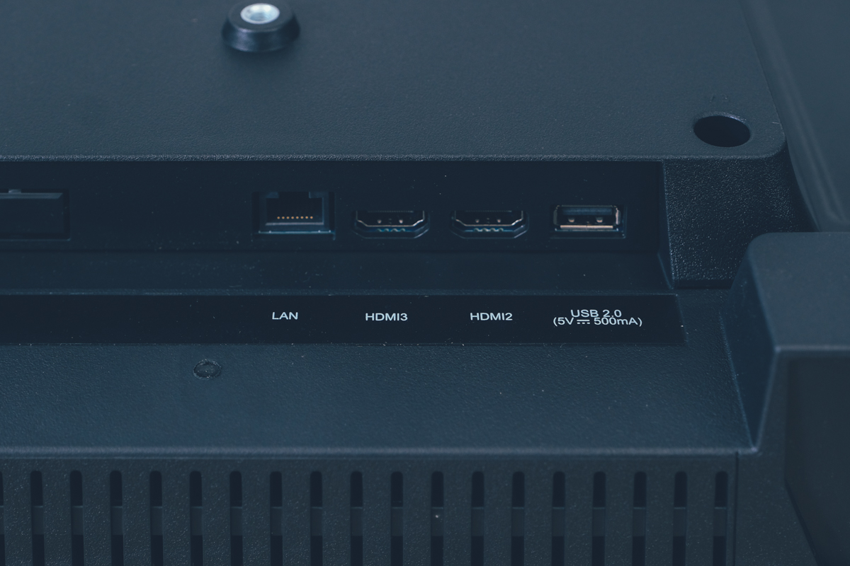 在 I/O 的部份也給的非常完整,在下方有一組 LAN Port(支援 Wi-Fi 所以想要無線或有線連網路都可以)、二組 HDMI 以及一組 USB,USB 可供電 5v/0.5A,以這樣的電量足以支援大多數的電視盒或小設備,不過已經有內建 Android TV 系統,我想也應該也可以把那些雜七雜八雜九雜十的 Android 電視盒都丟了吧。