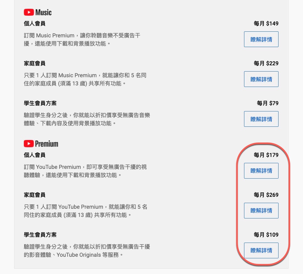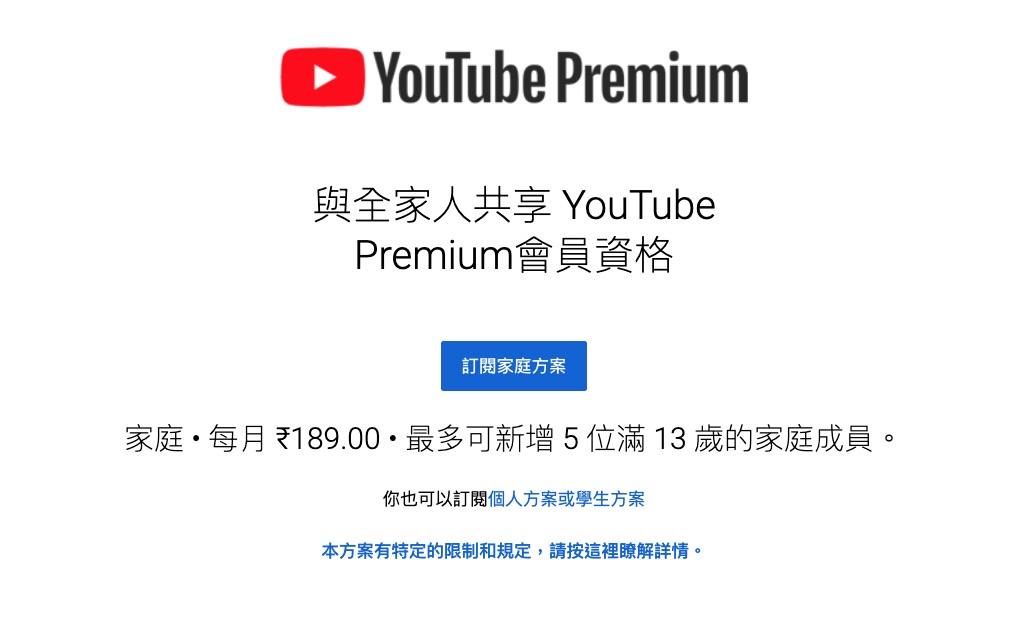 Premium 方案頁面:https://www.youtube.com/paid_memberships