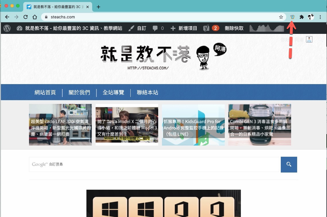 首先我們看一下正常畫面下,右上角一般都會有我們安裝擴充套件的捷徑圖示。