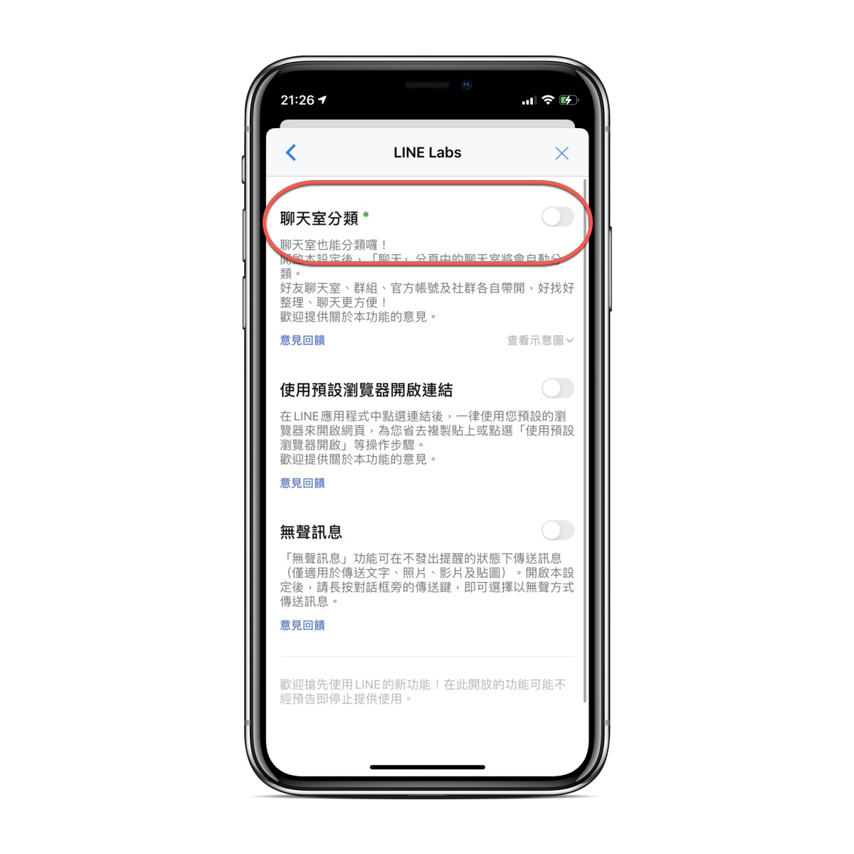 iPhone 版的 LINE 終於在實驗功能中加入超實用的「聊天室分類」