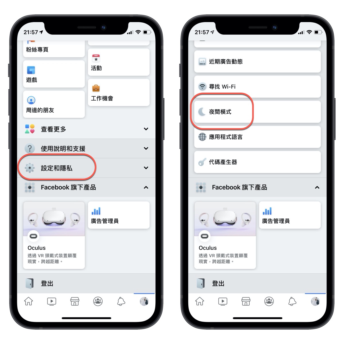 首頁 › 網路大小事 › iOS 的 Facebook 夜間模式要怎麼啟用?如何隨系統自動變換 iOS 的 Facebook 夜間模式要怎麼啟用?如何隨系統自動變換 發佈日期:2020/12/5 作者:阿湯 分類:網路大小事 當爸之後,每天哄睡湯包的任務差不多都是由我來完成,當湯包睡著後,我都會稍微等一下,所以很常在全黑的環境下滑 FB,但其實 FB 原本白色背景的情況下,在全黑房間裡滑,久了真的會瞎了,今天就來順便分享一下,到現在還有很多人不知道的夜間模式,讓你的 FB 變成是暗色系的背景,而且可以隨著你 iPhone 的系統自動調整變換,就不用手動切換,也不用擔心黑摸摸中裡眼瞎。 iOS 的 Facebook 夜間模式要怎麼啟用 首先,在 FB 右下角進入後,找到設定和隱私,展開後就會看到「夜間模式」。 點擊後可以選擇開啟或依系統,開啟的話就每次都要自己手動開跟關,依系統的話,只要你 iPhone 上有設定自動就會依時間自動變換夜間模式。 iPhone 的部份可以在「設定」>「螢幕顯示與亮度」,勾選自動,下面可以自行設定時間或是依他預設即可,快去試看看吧,讓眼睛舒服些。