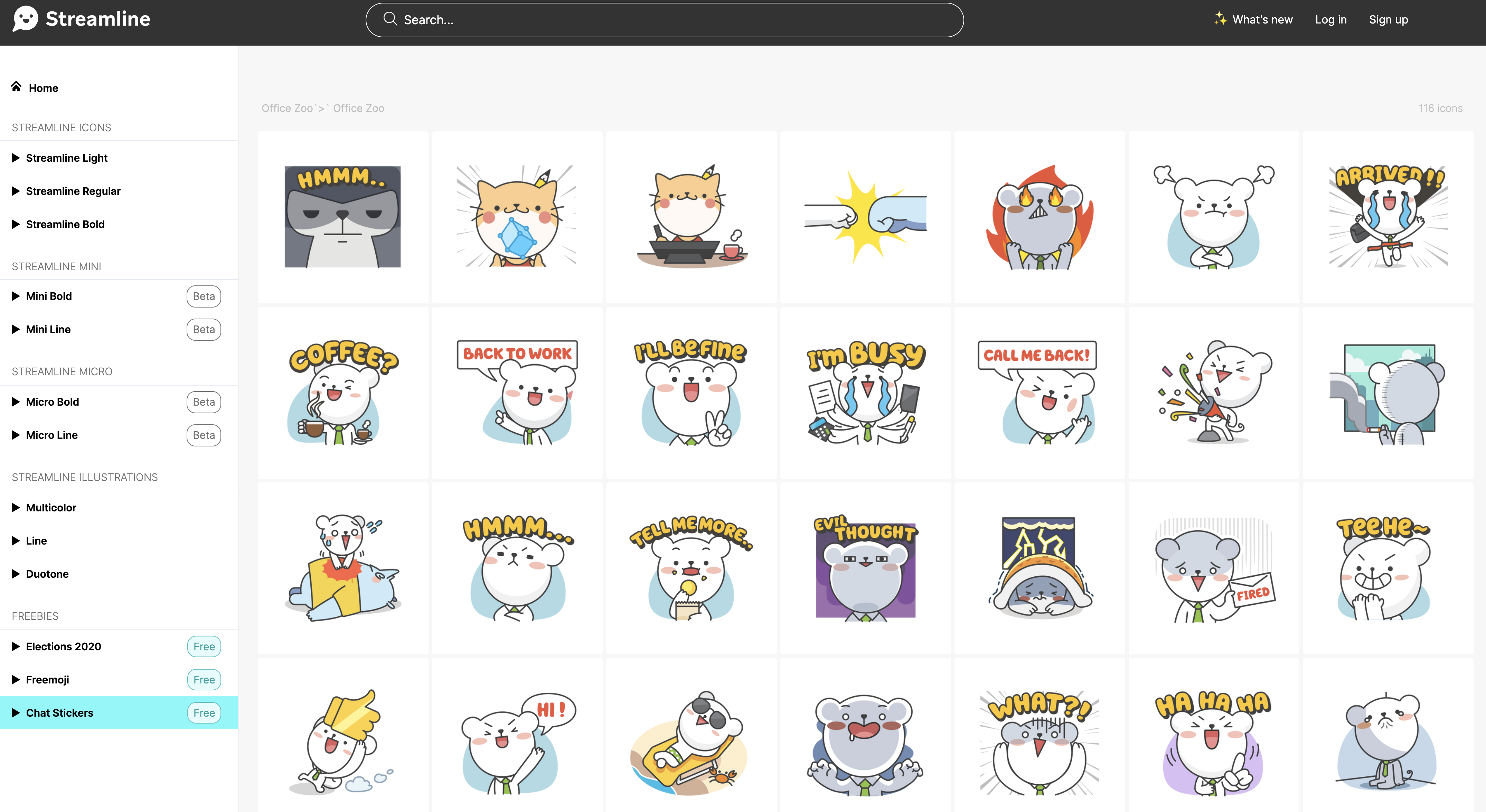 網站:https://app.streamline.to/進入網站後左邊是類別,右邊是圖示列表,主要免費的在下方的三個分類(有寫 Free)。