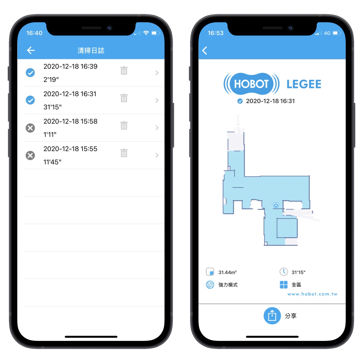 以上這幾點幾乎都是和目前市售其他品牌掃拖機器人不同的地方,而且我認為是更貼近家用的需求,而且單以拖地來說,水箱 340ml,搭配智慧噴水系統,拖的乾淨之餘也超級省水,像我家室內清潔到的地方大約有 25 坪左右,但是這樣的水量可以使用大約 3 次,而我用過某家的差不多水箱容量,但是只能用 1.5 次就得補水,HOBOT LEGEE7 雷姬掃拖地機器人拖的更加乾淨,但水量用的更少,更加可以認定 HOBOT 這塊下了不少功夫啊。
