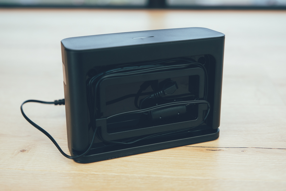 充電座有個小細節阿湯也順便和大家分享一下,大部份的充電底座後方都會有收線設計沒錯,但是有些很有事的,開口只有設計一邊,假設你今天開始是右邊,但插座是在左邊,那線就會多繞大一圈出去,而且也不美觀,而像這樣二邊都有開口才是正確的啊。