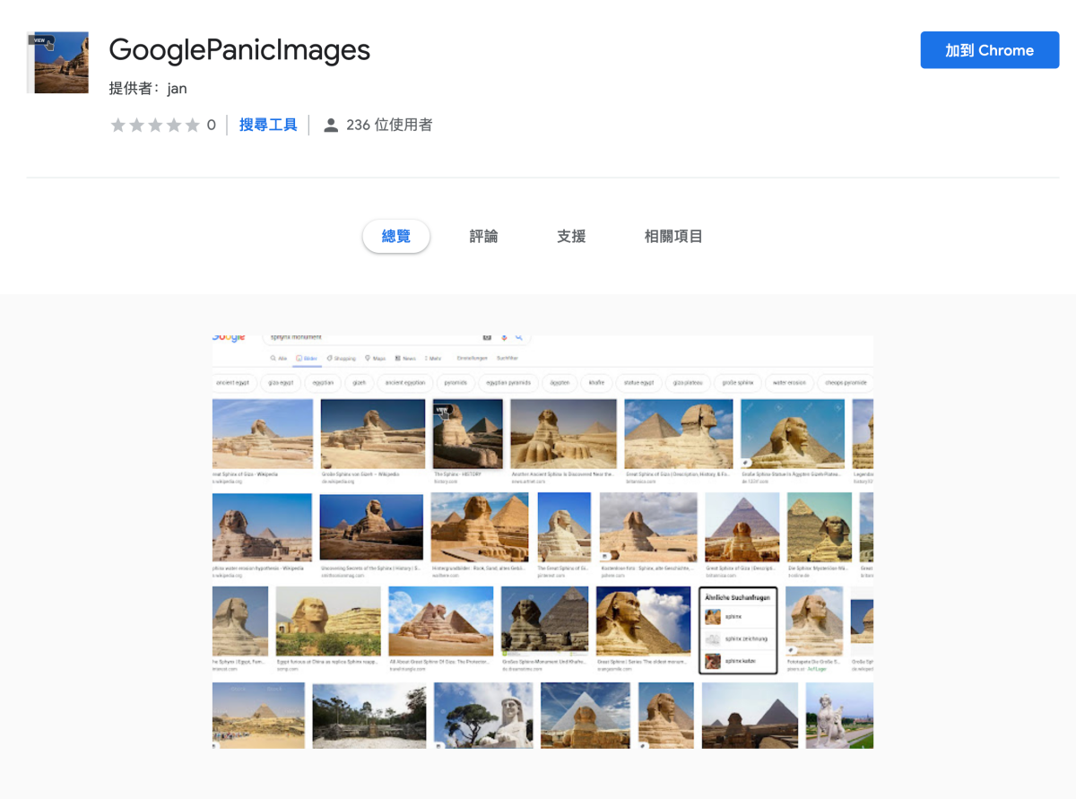 接下來,去 Chrome Store 安裝這個 GooglePanicImages。