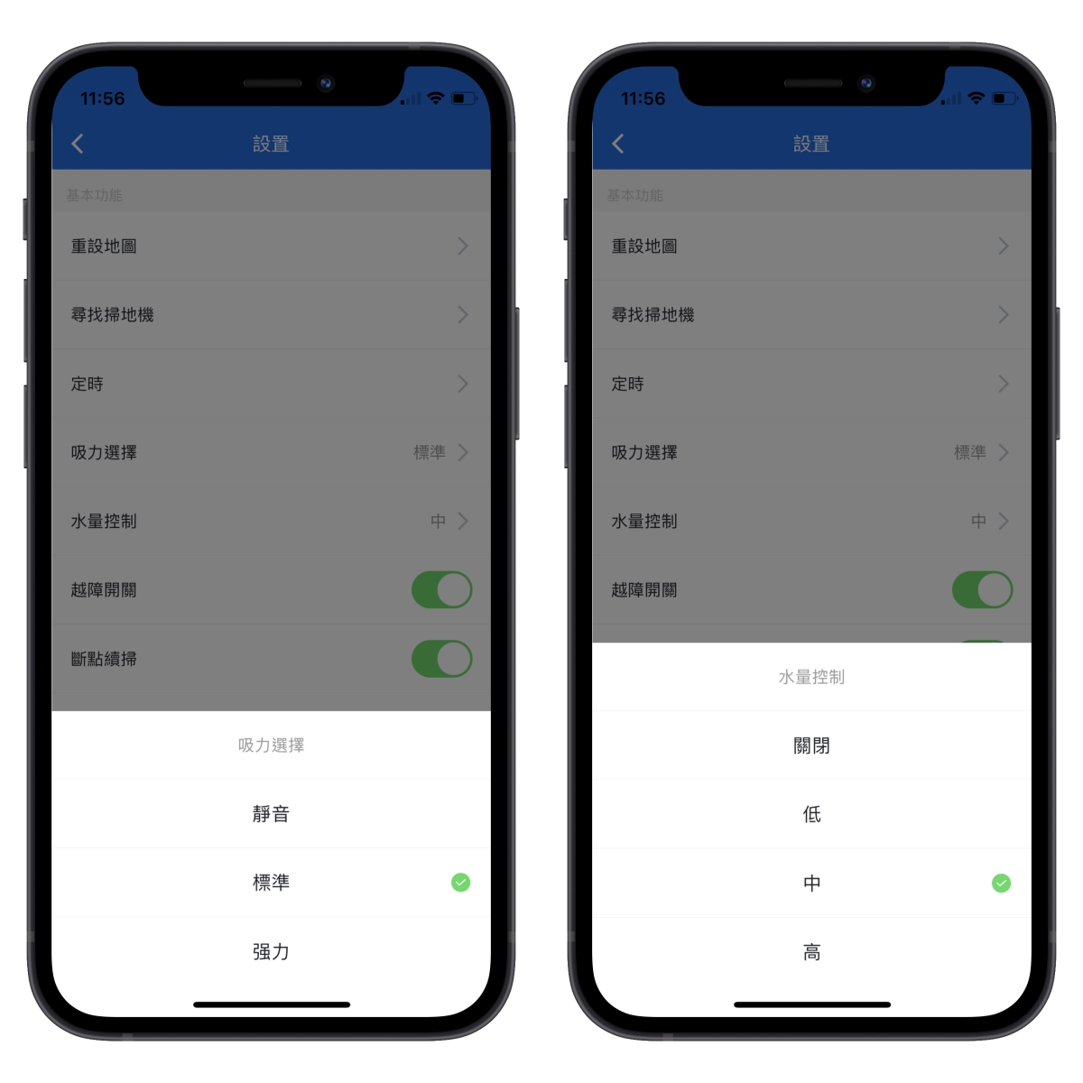 不論是吸力或水量都有三段可以選擇,大家都可依髒汙的程度或地板質進行設定。