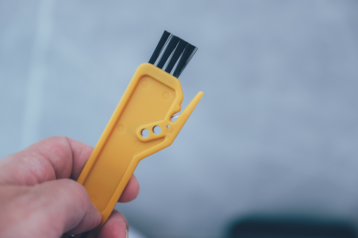 集塵盒清潔刷上還有鳥刀的設計,可以用來割斷纏繞在滾刷上的毛髮,這非常好用,大家千萬不要把這小工具弄丟了。