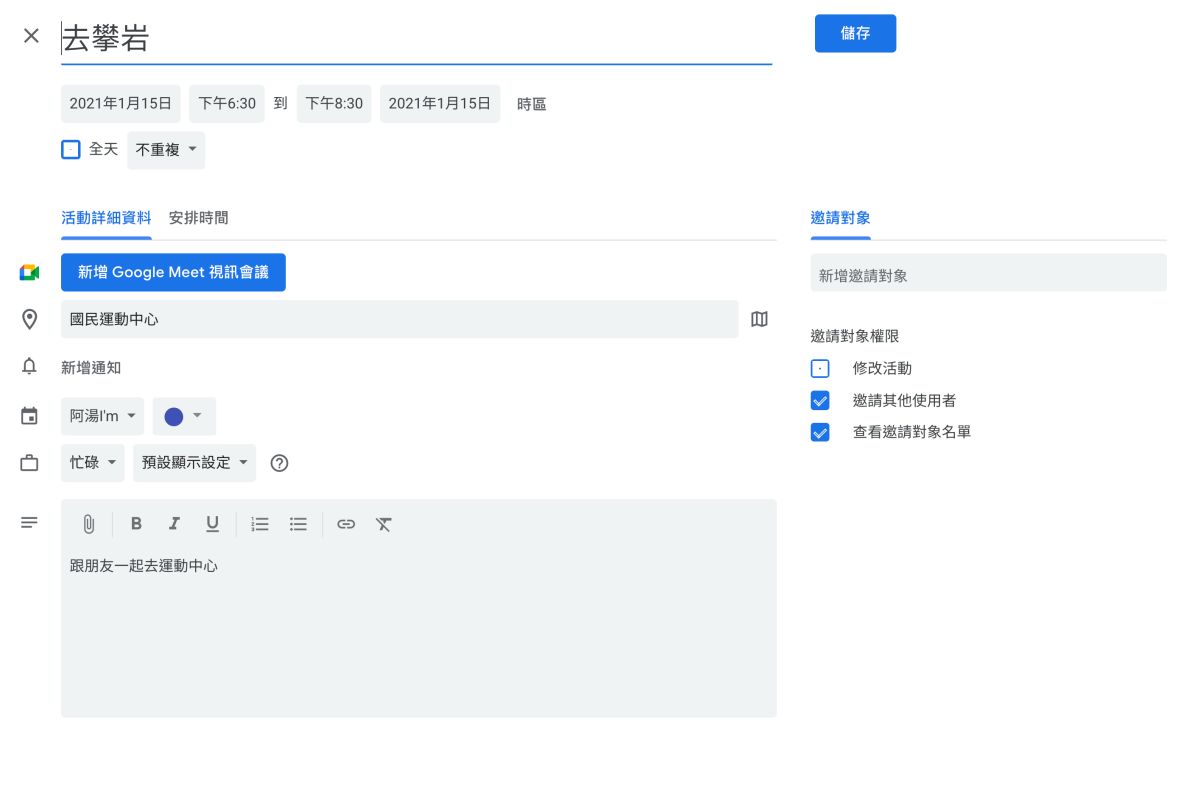 產生後,在右上角就會顯示行事曆連結,複製下來就可以給朋友了。