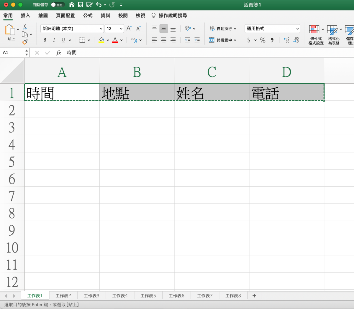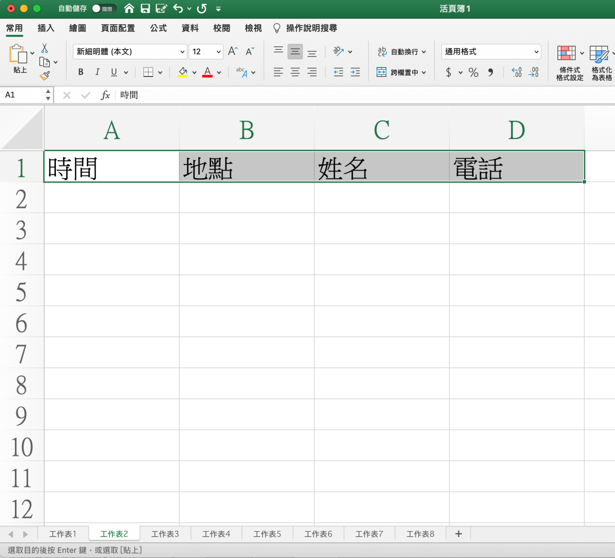 舉個簡單的例子,就像這樣,你可能會有 N 個工作表,每天都得從第一個操作到最後一個,每次輸入完就切換到下一個工作表,其實這當然也是有快捷鍵的,往下來看。