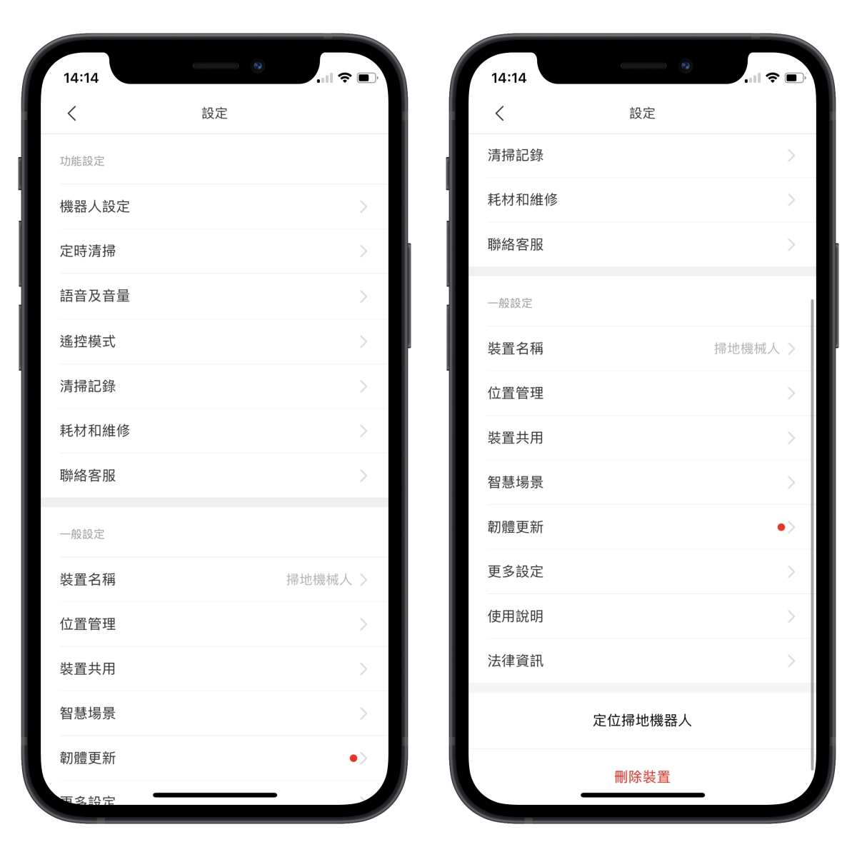 在 APP 裡還有更多設定,像是定時清掃、遙控模式、查看清掃記錄等。