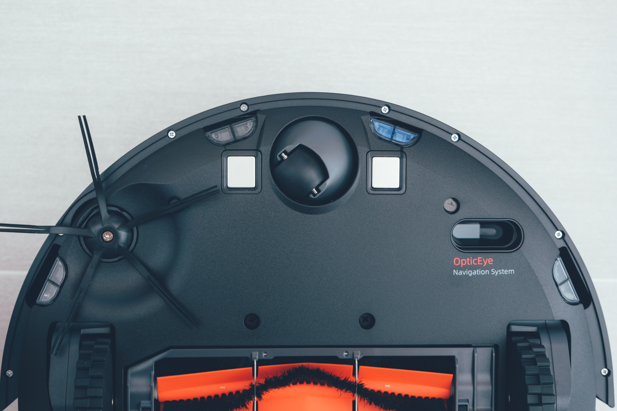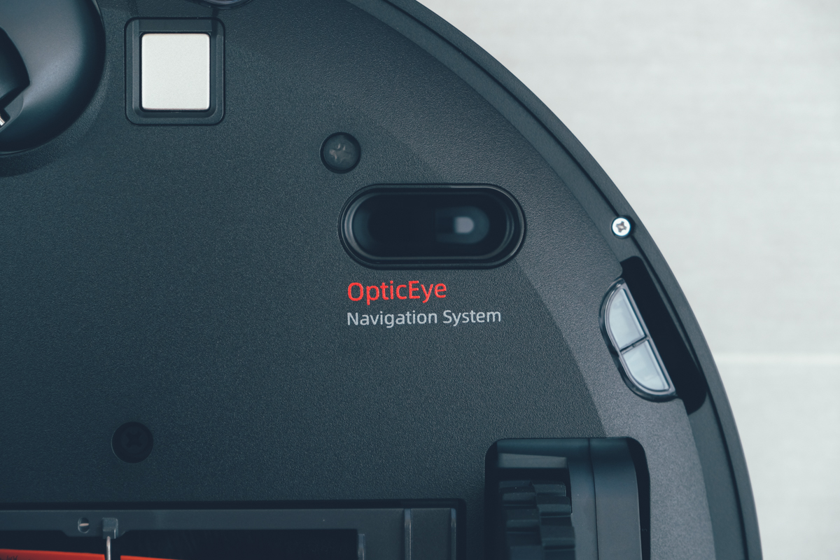 在機身的底部也搭配了雙光學 Laser 及 Led 運動追蹤傳感器,以高頻率拍攝地面,再進行前後圖片的比對分析,就可以清楚的知道機器人走了多遠。