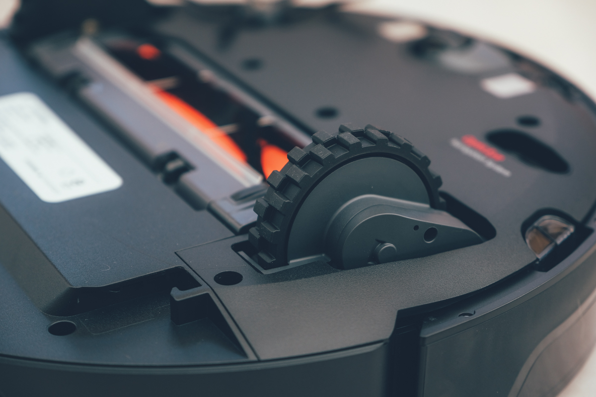大輪徑的輪軸可以跨越最高 2cm 的圓弧線槽,如果有使用拖布支架的話,大約是 1.5cm 左右,依不同的材質、形狀的障礙物,能夠跨越的高度也會有所影響。