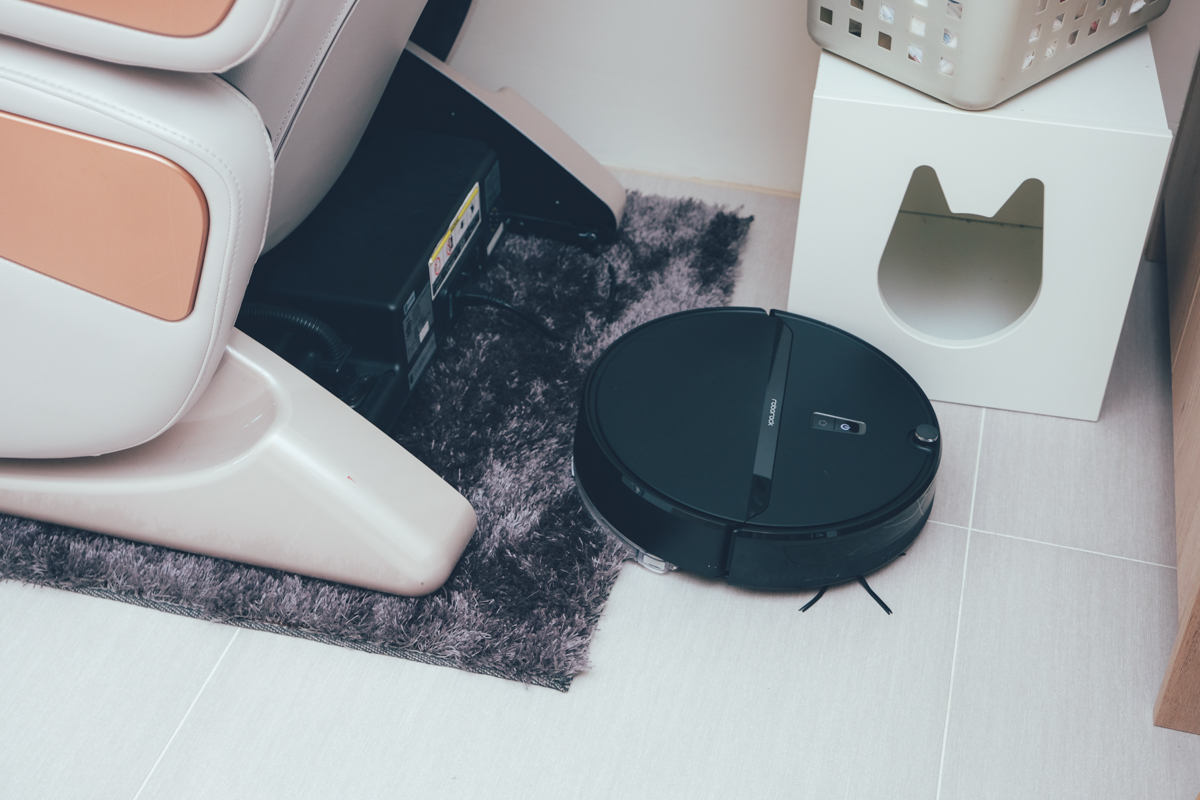 纖瘦的機身,即便是像廚櫃下的凹槽也可以來去自如,而且可以看到邊邊掃的多裡面...很多掃地機會怕撞而離牆很遠,反而讓邊角都沒有清掃乾淨。