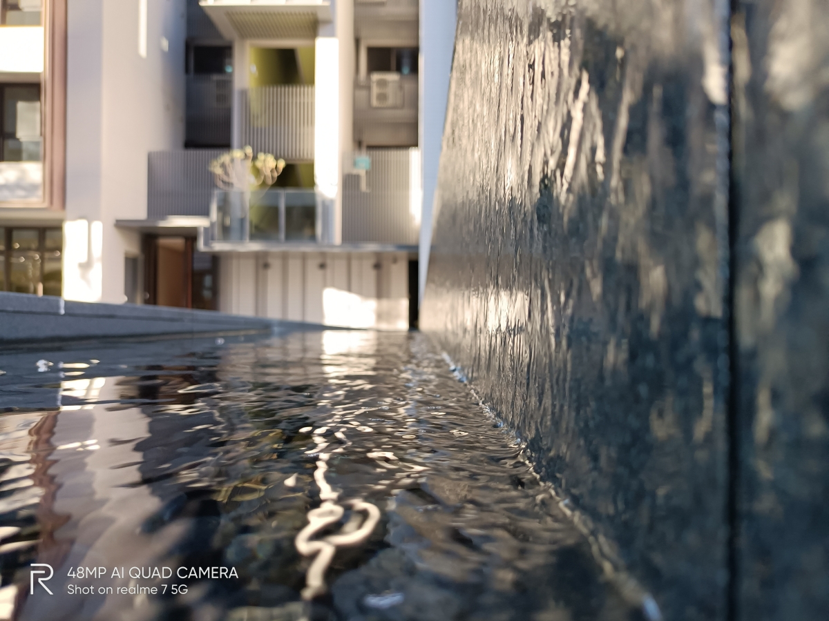 相較於 X7 Pro,7 5G 的後背設計又有所不同,主要分為破曉之光(藍色)及青出於藍(偏藍綠色)二種顏色,下方阿湯拍攝的為青出於藍,從鏡頭正中間一分為二,左右二邊的折射感各有不同,跟 X7 Pro 的美背又是不同的感受。