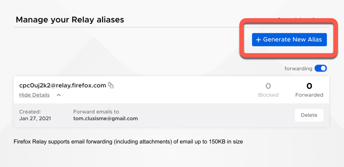 使用需要有 Firefox 的帳號,而且轉發信件只會轉去你的 Firefox 帳號,所以在註冊時請以你想要隱藏的 Email 為主,如果你有多個 Email 想隱藏的話,那就多申請幾組帳號吧。