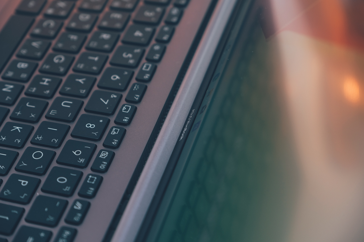 這次 VivoBook S14(S435)採用了相當特別的秘境綠並搭配質感金屬機身,說真的阿湯已經盡力把這顏色的感覺拍了出來,因為在不同的光源、角度下,你看到灰色跟綠色的比例都會有所不同,有時會覺得是金屬灰帶點綠,有時會覺得是綠中帶點灰,所以綠色加上「秘境」二字,真的是當之無愧。