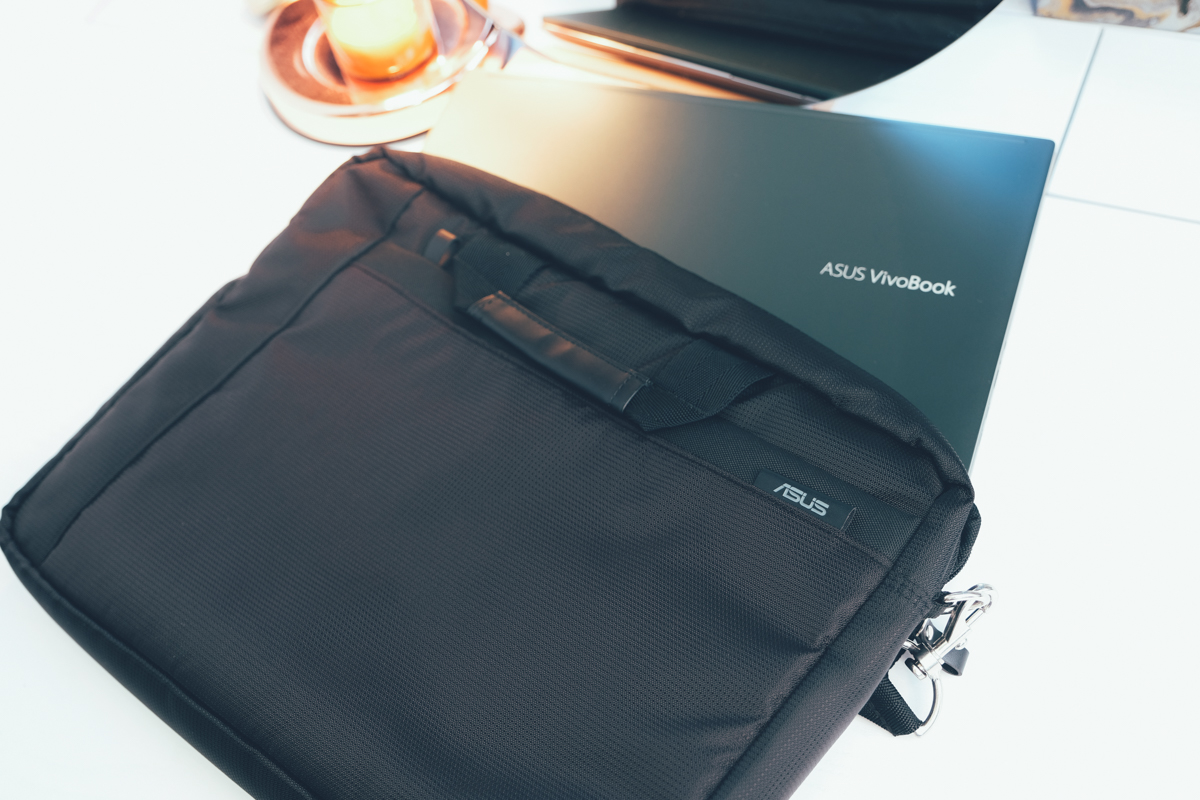 貼心的附有 ASUS 的側背筆電包,買來裝進去就可以直接出門了。