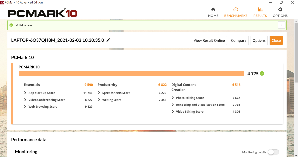 PCMark 10 總分為 4775,同樣也有著相當不錯的分數。
