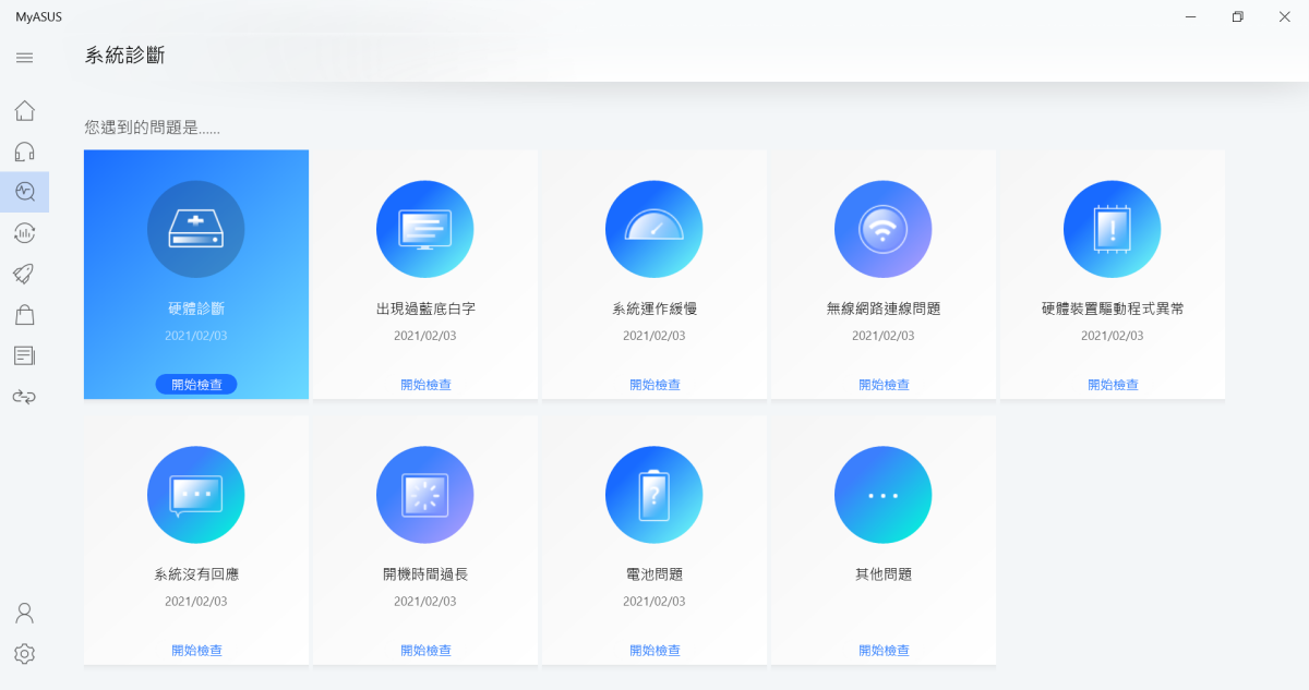 內建的功能阿湯主要就分享這非常實用的 MyASUS,推薦大家一定要打開來看一下,不然你會錯過非常多實用功能,像是當你電腦有問題時,可以透過系統診斷功能先行排除問題,有可能在這裡就獲得排解,可以省去送修的時間。