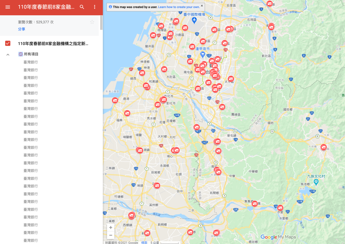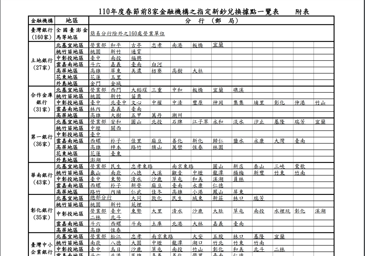 PDF 版本:請點我前往PDF 版本點擊網址後會直接下載,打開 PDF 後就可以直接查看各家銀行有哪些分行據點可以兌換,當然只看到分行名稱會不知道在哪裡,這 PDF 的所有分行名稱都是可以點擊的,點了之後會連接到 Google 地圖的資訊,就可以直接導航前往了。