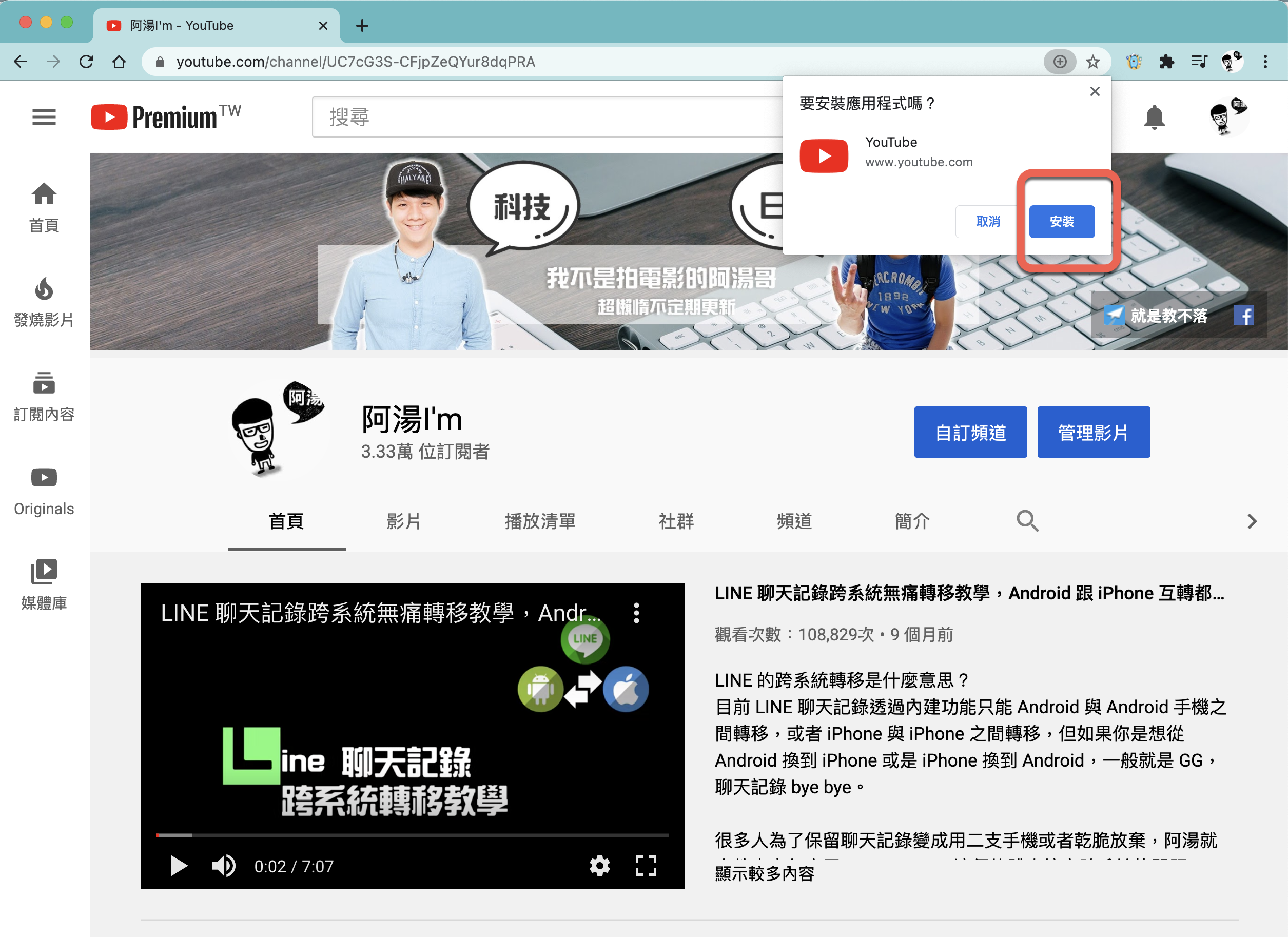 點擊後就會出現問你要不要安裝 YouTube 應用程式了。