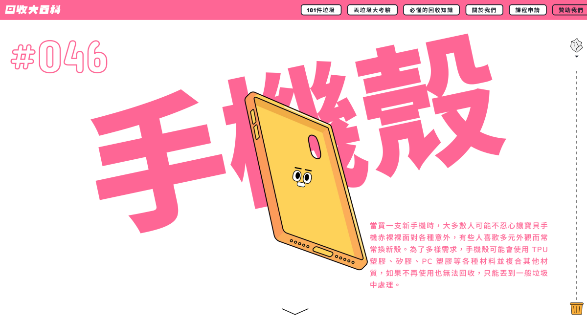 其實手機殼構成並不單純,所以是不能回收的,只能丟一般垃圾,剩下的資訊大家可以再看一下,頁面還有很多說明。
