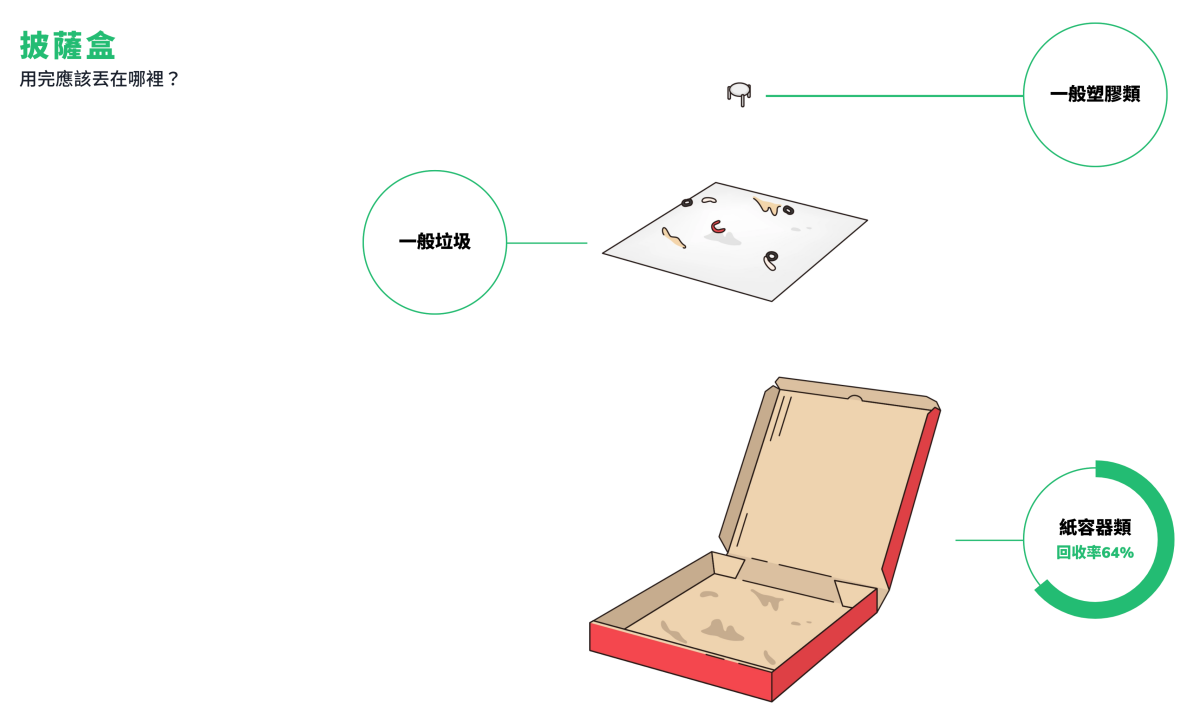 而披薩盒裡有分成三個部份,也請大家幫它分開分類。