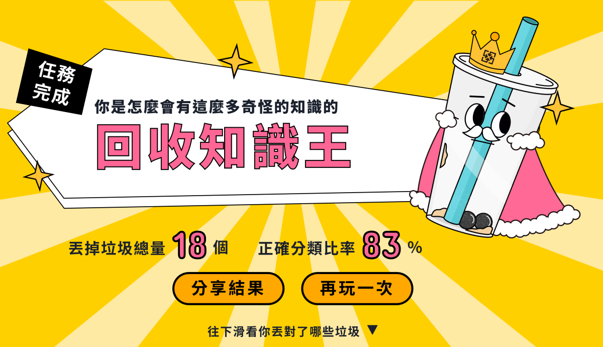 當你一一的檢查完各個垃圾分類後,不妨來為自己考個小試,看看你對於垃圾的分類是否都正確。