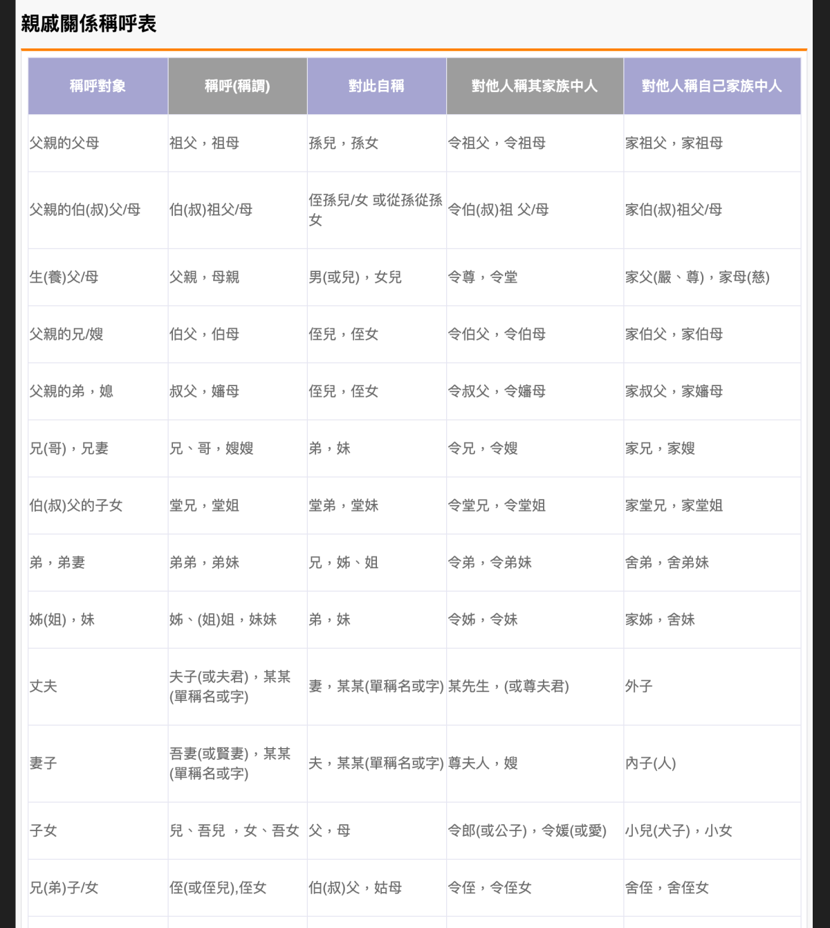 如果你想查的真的很複雜,往下還有更詳細的親戚關係稱呼表,可以對照一下。