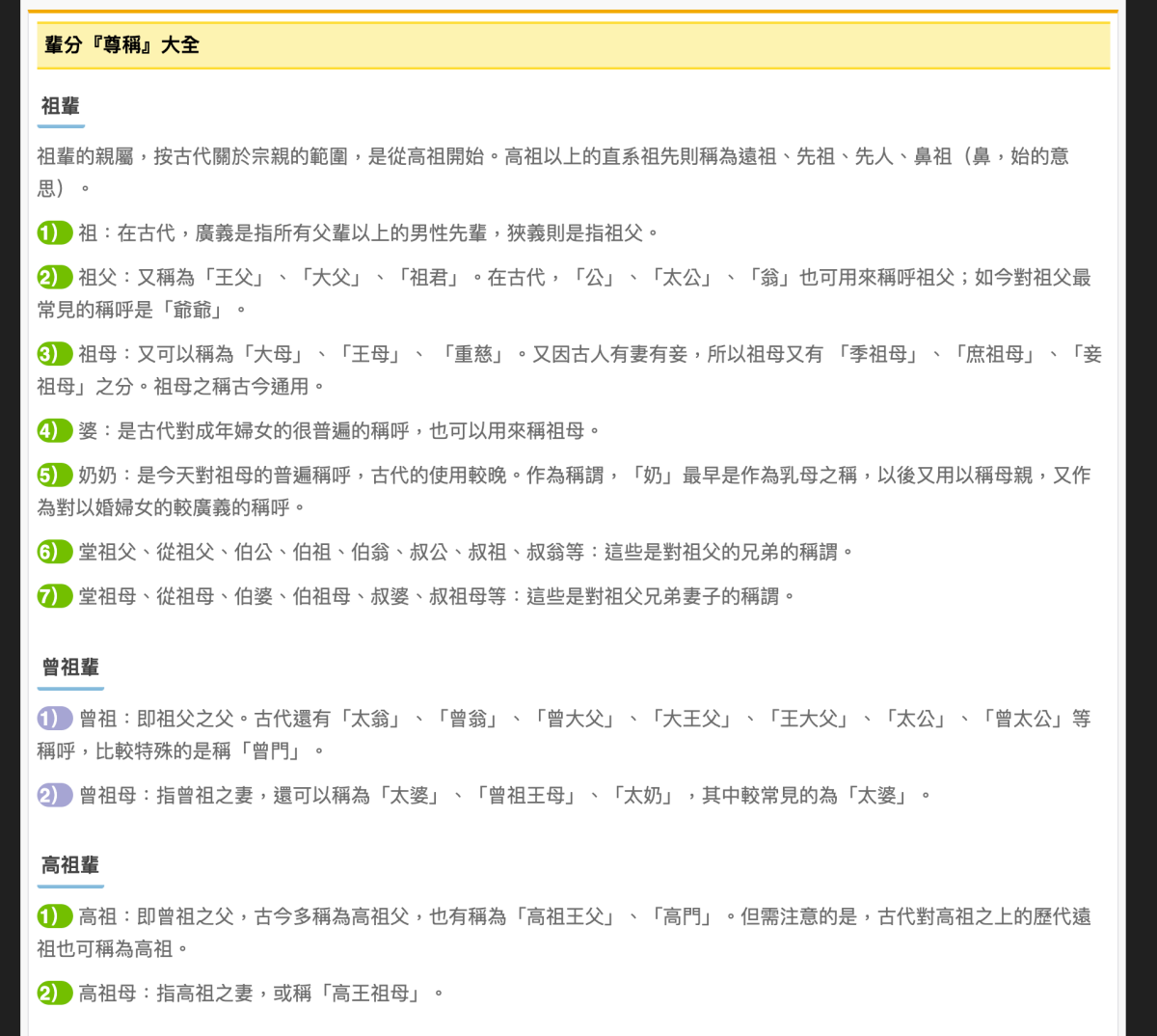 再往下還有更多跟輩分相關的百科,大家可以趁這一年一度的過年大會師來長一下知識。