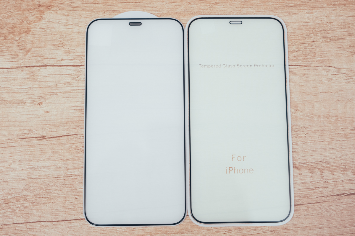 拿片他牌的(右)給大家比較一下,左邊是 Zeelot 的抗藍光,在還沒貼上去前就很明顯的看到右邊那片是泛黃的,這並不是底部有黃色,而是玻璃本身就黃黃的。