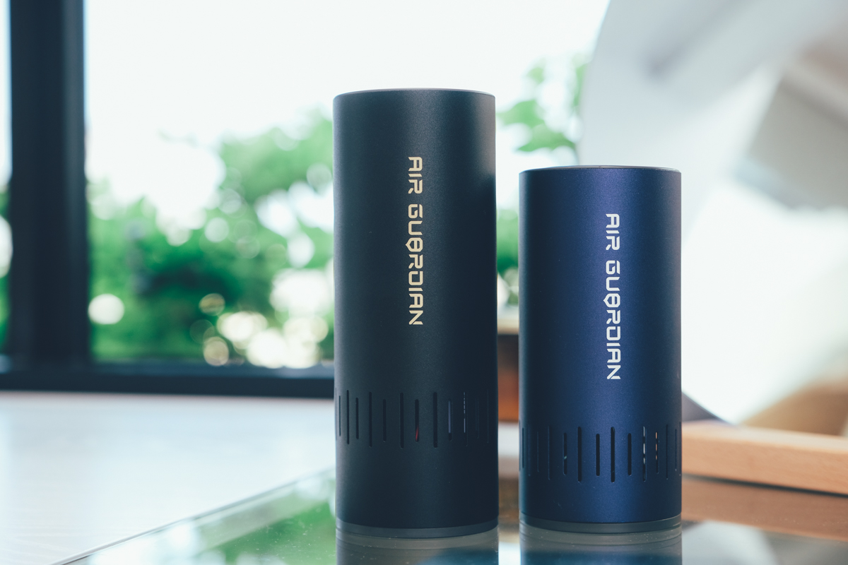 Air Guardian 活氧淨菌器主要分為二個版本,左邊比較高的是一般版,內建電池,採用充電式,每次開啟一次可連續使用 8 小時,適用空間大小為 3-6 坪,右邊的為車用版,採插電使用,同樣每次開啟會連續運轉 8 小時,適用空間較小一些為 1-2 坪,主要可以用於車內或家中較需要常態使用的小空間像是廁所等都相當不錯。
