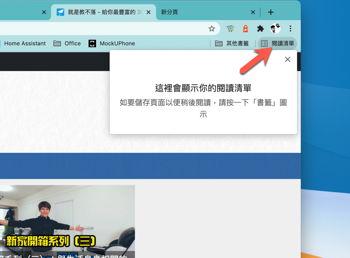 接下來就可以在書籤列的最右邊看到閱讀清單了,如果你沒看到書籤列代表你沒顯示書籤列而已,你也可以新增一個空白分頁,就會看到。