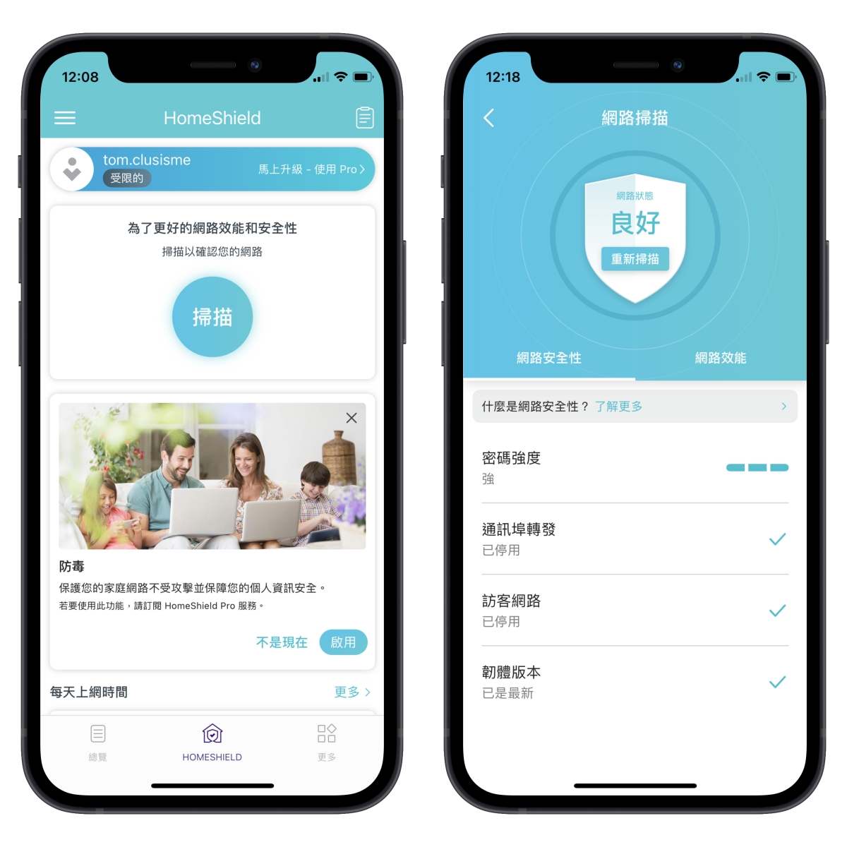 HomeShield 即便沒有使用 Pro,在基本的功能中,我們還是可以透過掃描功能直接檢查網路的基本安全性如何。