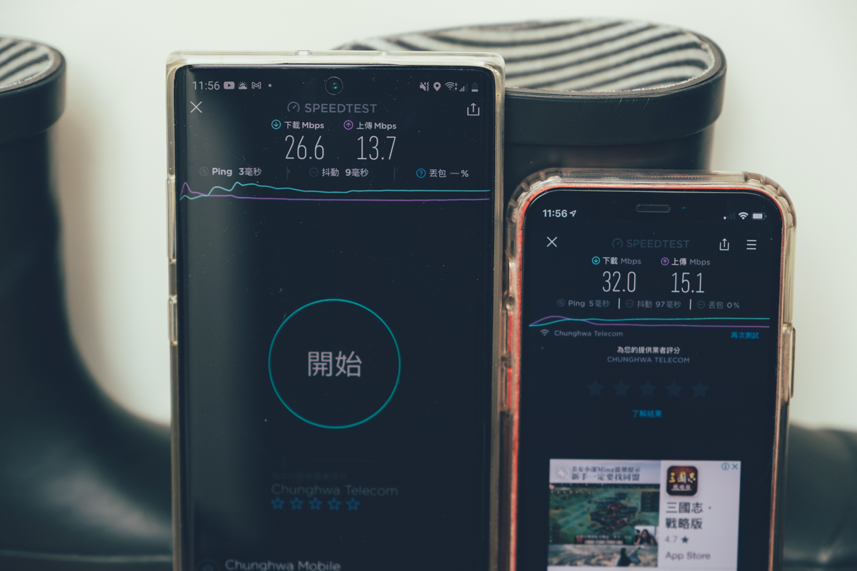 - Galaxy Note 10:下載/32Mbps、上傳/15.1Mbps
