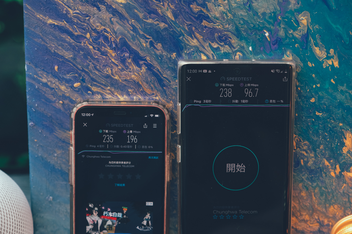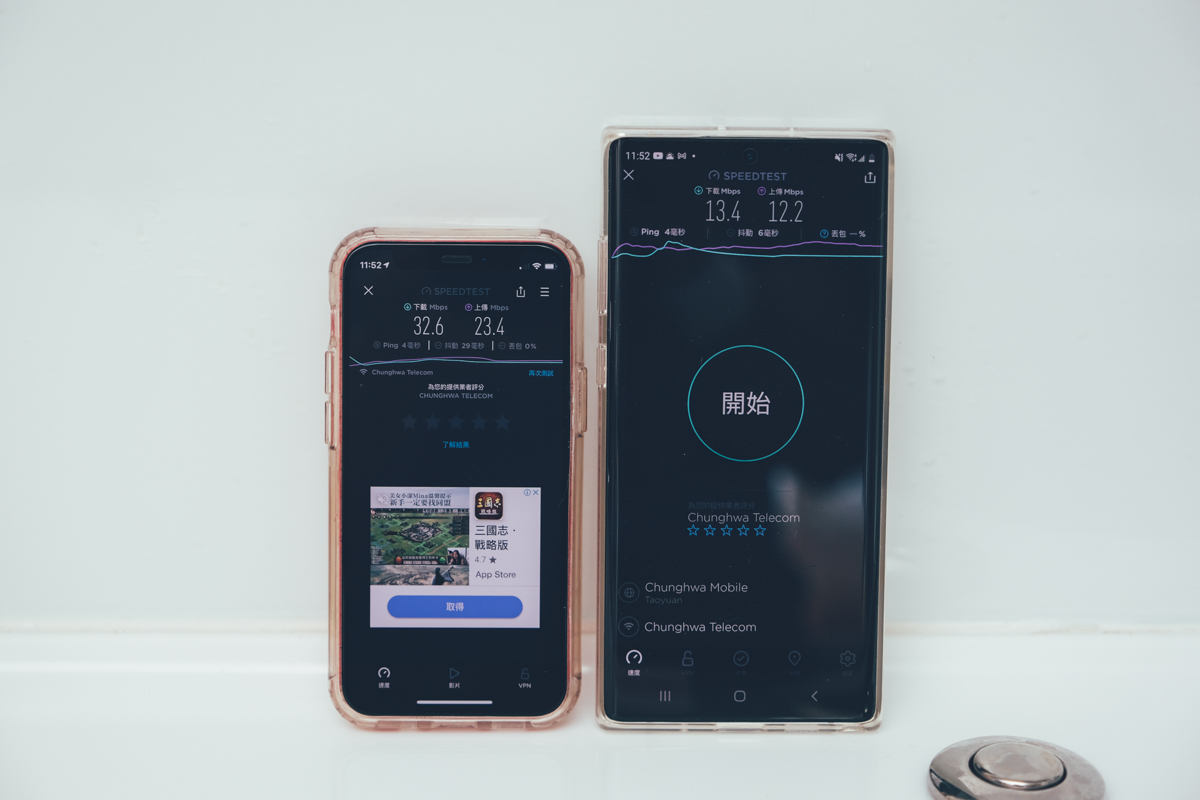 - Galaxy Note 10:下載/13.4Mbps、上傳/12.2Mbps