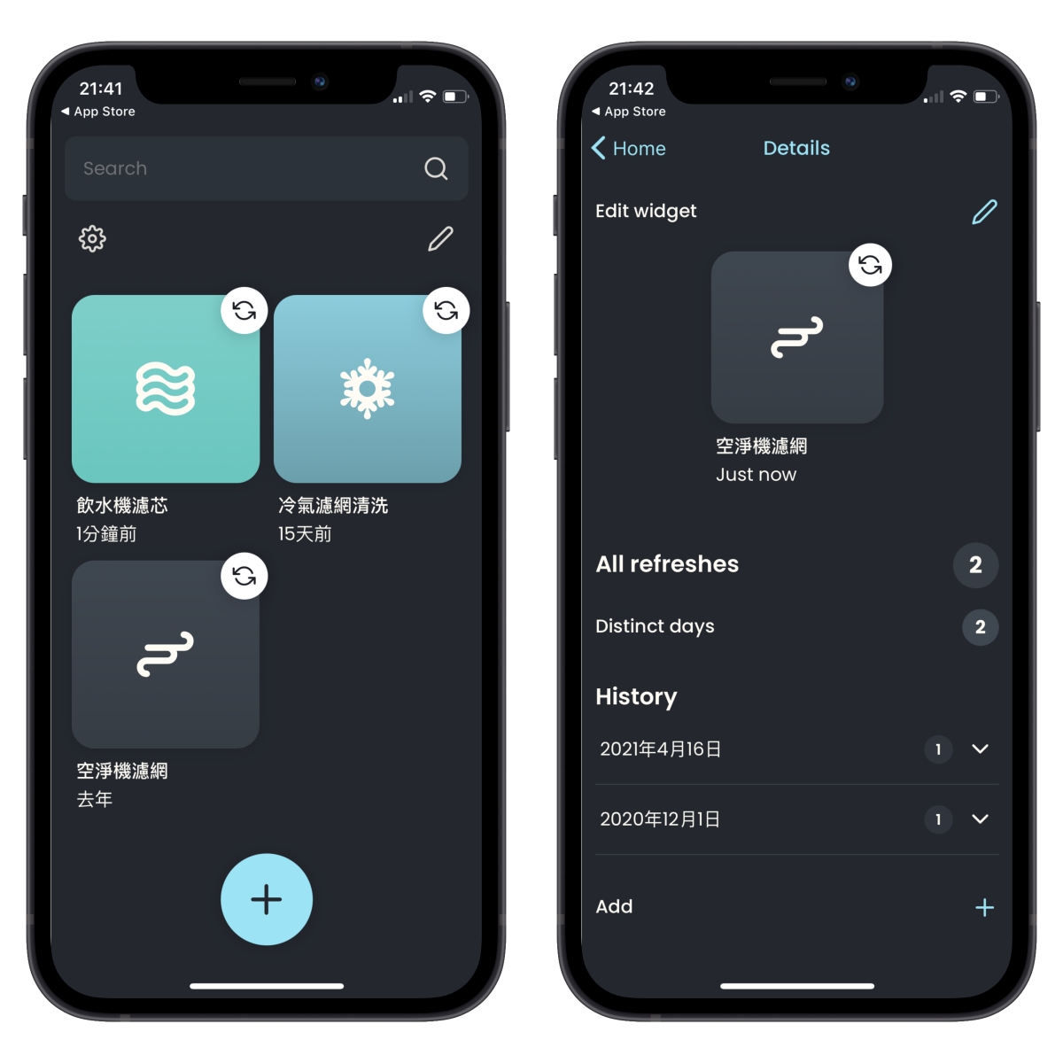 不知道大家都是怎麼記錄家裡飲水機換濾芯、空淨機換濾網、冷氣機洗濾網等的時間呢?之前我都會是當下換完後,用 Google 行事曆記錄下一次要更換的時間,不過久而久之會出現一個問題,即便 Google 日曆跳出了提醒,當下如果沒即時做的話還是會忘記,一跳過就忘記上一次到底什麼時候換的了,所以後來我就換了一款叫做 XAgo 的 APP,可以快速的記錄每次更換的時間,就不怕忘記上次什麼時候換的了。