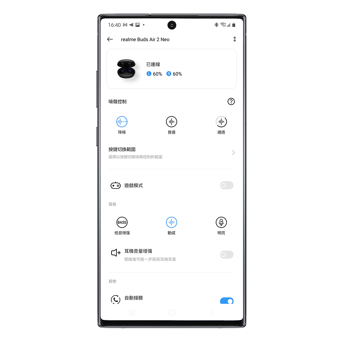 透過 realme Link APP(目前僅支援 Android 版本)也能進行更多設計,像是開啟電競模式,設定的按鍵模式、音效等,可以更加符合你的使用習慣。