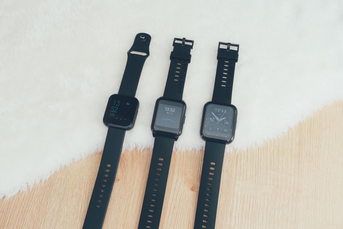 為了證明阿湯自己真的有在用 realme 的智慧型手錶,拿出一代來給大家比對一下,由左至右分別是 realme Watch、realme Watch 2、realme Watch 2 Pro,其實一代還是相當好用。