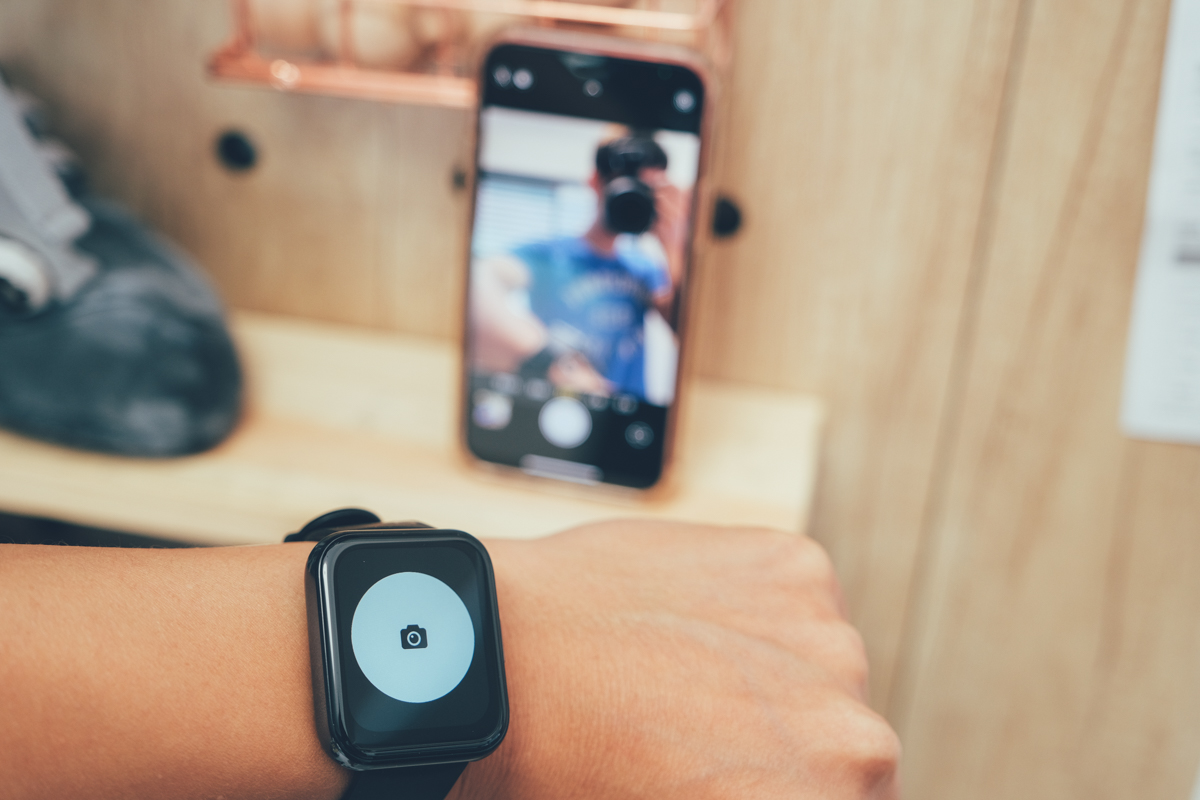 內建的遙控拍照功能也相當的實用,像阿湯之前去攀岩,如果想要拍照就有點麻煩,所以我都會搭配智慧型手錶做為無線快門使用,手機再先設定好倒數計時就好,不然要怎麼倒數計時 10 秒後爬到 10 公尺高的地方.....