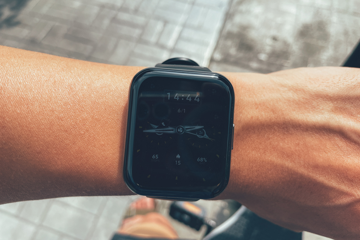 realme Watch 2 系列也為了對抗強烈的陽光,這次的螢幕最高亮度可以達到 600nits,即便像這樣在大太陽底下,畫面一樣相當的清晰可見。