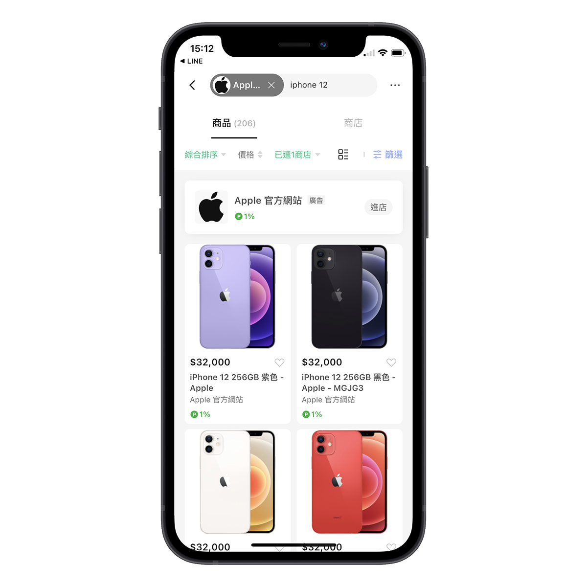 以 iPhone 12 來說,原價是 32,000 NTD,原本是 1% 的 LINE POINTS 點數回饋,共回饋 304 點(回饋點數是以未稅價計算),但如果在 6/16-6/18 期間購買是 8% 的回饋,一共回饋 2,348 點, 是不是差很多!